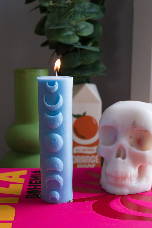 Beeswax Moon Phases Pillar Candle: Handcrafted Celestial Decor